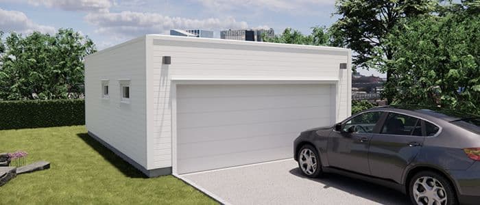 Stryn 1: Dobbelgarasje med bod, flatt tak