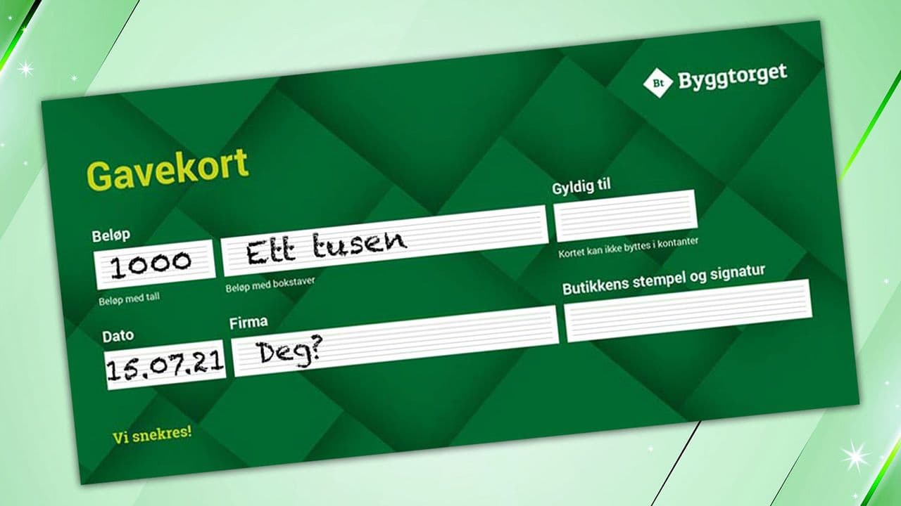 Kjøp et gavekort i din lokale Byggtorget butikk. Verdien på gavekortet velger du selv!