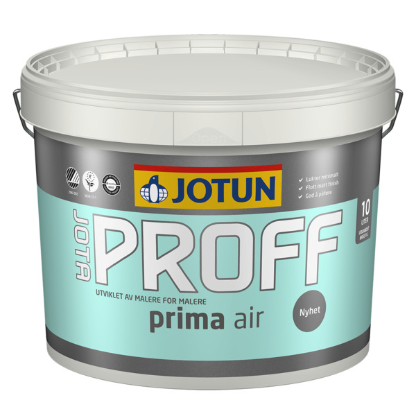 JOTAPROFF Prima air er en luktsvak ren akrylmaling utviklet spesielt for proffen. Malingen gir deg et godt og behagelig arbeidsmiljø, i tillegg til et suverent sluttresultat på veggen.