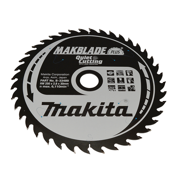 Tre. Middels grovt / fint kutt. ATB tanning. Makblade Plus sagblad for gjærings- og bordsager har en unik patentert teknologi. Disse bladene er utviklet for å dempe vibrasjon, er fantastisk stillegående, forbedrer arbeidsmiljøet og gir både bedre varighet på bladet. Mindre vibrasjon gir større nøyaktighet og forlenger bladets levetid.